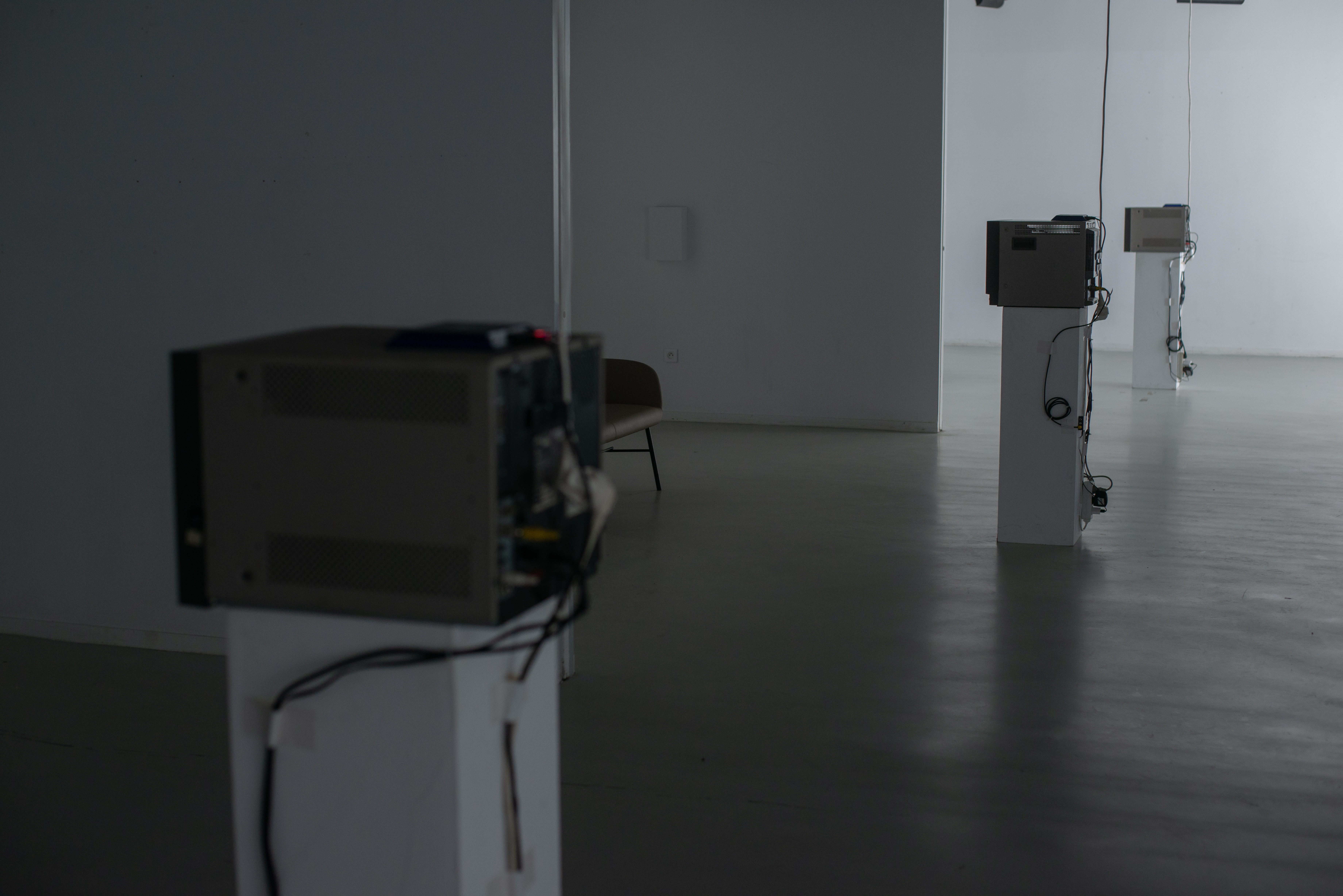 Dans ce tryptique vidéo, deux temps coexistent et se confrontent : le temps périphérique des joueurs à l’échauffement et des supporters du stade, qui se répète en boucle ; et le temps central, celui de l’effondrement, dans un ralenti extrême. Dans cette confrontation, nous voyons en même temps la dissonance que l’anticipation à rebours des drames à venir. Dans cet évènement surgit une double convocation du temps, celui figé de l’instant, et celui qui avance vers un avenir historique déplorable.