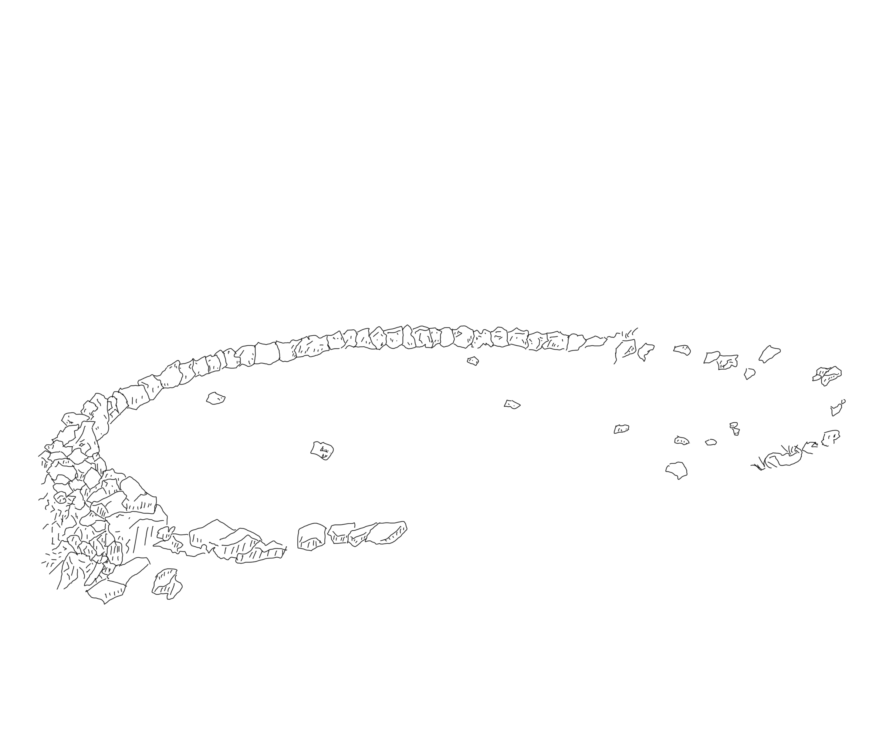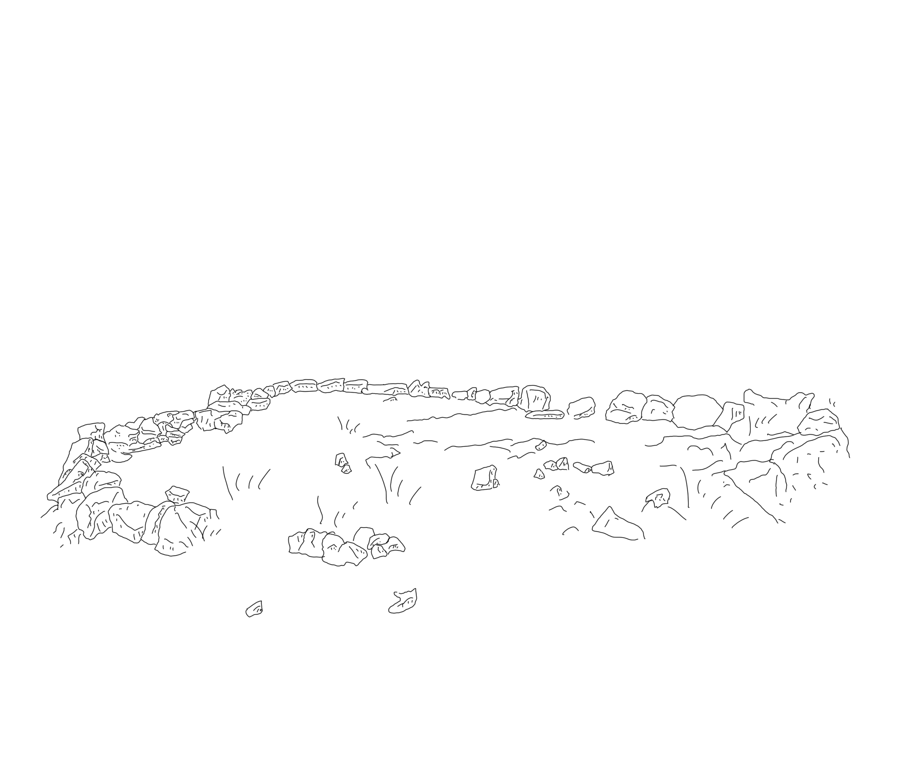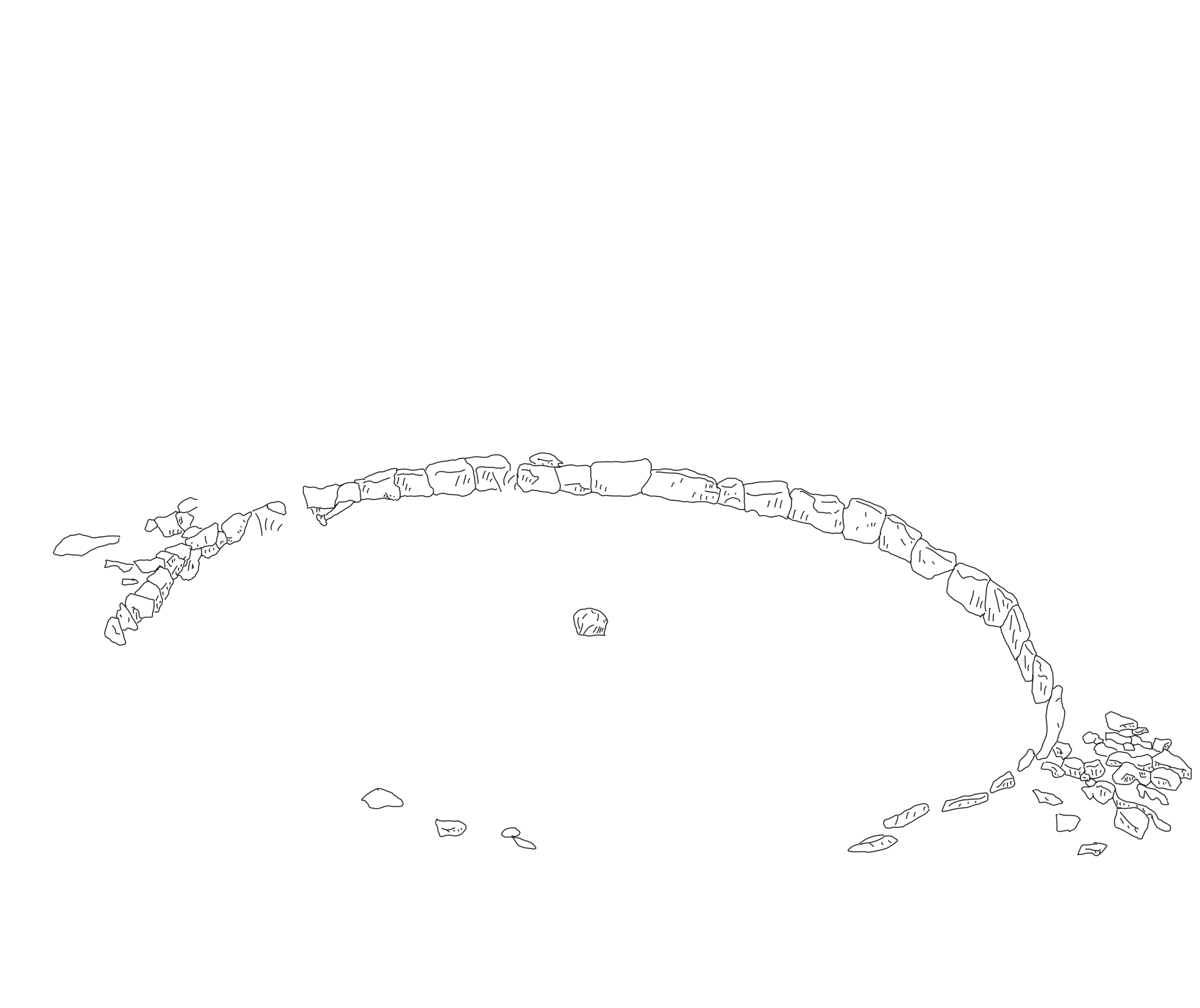 La pierre demeure un temps encore, l'usage est lui perdu, définitivement, et l'horizon, lui aussi, perdu, définitivement. En grec, l'horizon se dit [horizôn (kuklos)], (cercle) qui borne la vue, de [horizein], limiter , dérivé de [horos], borne, limite. Voilà, tout est question de cadre, de limite ; on regarde un cercle depuis un cercle, un cercle qui en regarde un autre ; on regarde une île depuis une île, une île qui en regarde une autre. Comme si la définition de l'insularité passait par l'ubiquité circulaire, de proche en proche, par contact.
