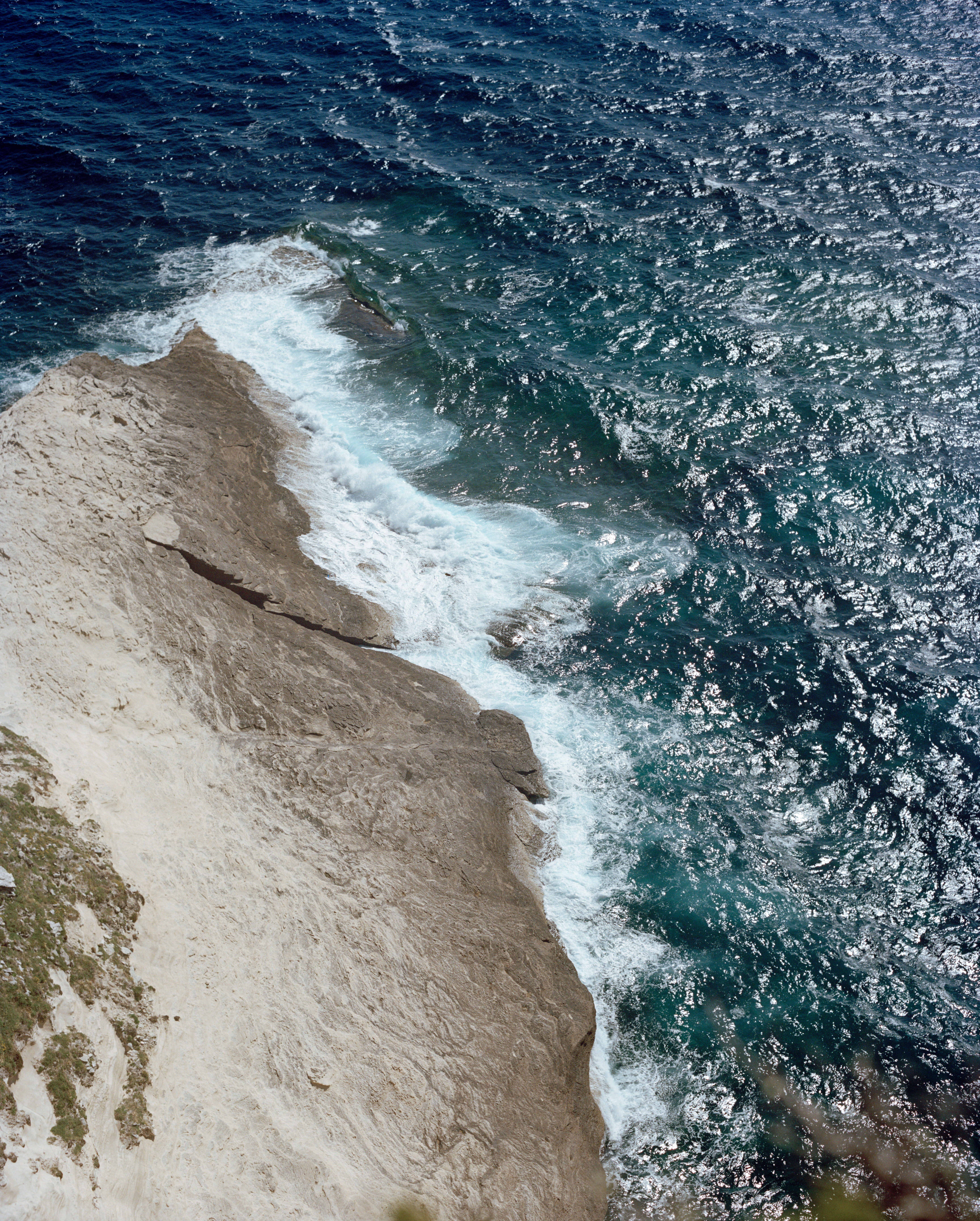 Ce projet est issu d’une résidence à Corsica Luce - Locu d’Arte sur le territoire de l’Extrême-Sud de la Corse. Le particularisme de cette région est la présence systématique, en tant qu’insulaire, depuis Roccapina jusqu’aux montagnes de l’Alta Rocca, est la présence systématique de la Sardaigne au loin, derrière la brume et à travers la nuit. Ces deux îles jumelles, la Corse et la Sardaigne, proches de quelques kilomètres, sont pourtant sous gouvernance différente depuis la fin de l’Empire Romain malgré deux cultures rurales et immatérielles relativement proches dans notre contemporain. Plutôt qu’un corpus comparé des deux territoires, je décide, pour interroger cet archipel depuis la Corse, de partir à la recherche de ces structures optiques (souvent militaires), de ces fragments d’insularités ou ses évocations, (circularités, ruines, trous), de moyens et d’espaces de passages (bateaux, croix chrétiennes), de corps, allégories possibles, et enfin le confronter à ce corps bien-aimé. Tout cela face à l’impossibilité de photographier la Sardaigne depuis ma position de regardeur. Ainsi faire vivre l’expérience de la séparation pour décrire cette relation entre la Corse et la Sardaigne, par des analogies d’insularité, telle qu’elle a été définie par les Grecs. Il a s’agit ainsi de donner une forme à cette insularité étrangère à tâtons, de tourner autour, de longer les côtes de Senetosa jusqu’à Portivechju en montant jusqu’à Bacinu, afin de questionner notre propre rapport à la vision, donner à notre œil la forme de l’île afin qu’il puisse, à son tour, voir l’île. Enfin, cette quête autour de corps archipéliques scindés m’emmènent à la question de l’être aimé, prenant part à la longue tradition photographique de l’intimité amoureuse, cette fois à travers le mythe d’Aristophane dans Le Banquet de Platon